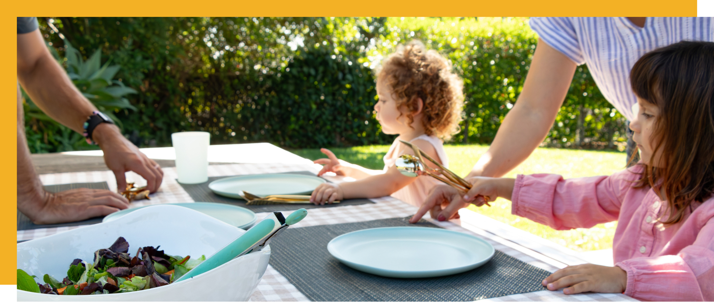 Family dinners are about more than food: they’re about connection. Turn off the TV, put phones away, and just be present. Sitting down together can make a difference in how kids engage with their meals. They’ll learn that mealtimes are a chance to connect with family, not a battle to avoid food. Fewer distractions may mean more focus on food!