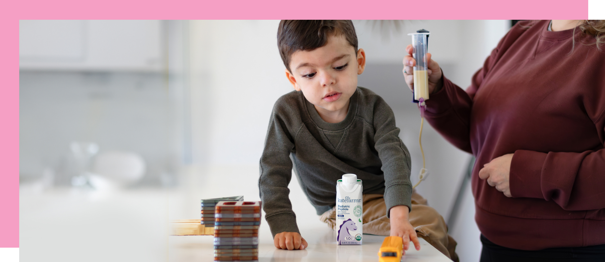 Historically, hydrolyzed proteins found in formulas were dairy-based. However, a plant-based peptide formula can be beneficial for those who can’t tolerate dairy products or have milk-based sensitivities. We created Kate Farms peptide formulas with hydrolyzed pea protein, supplemented with other plant-based amino acids.