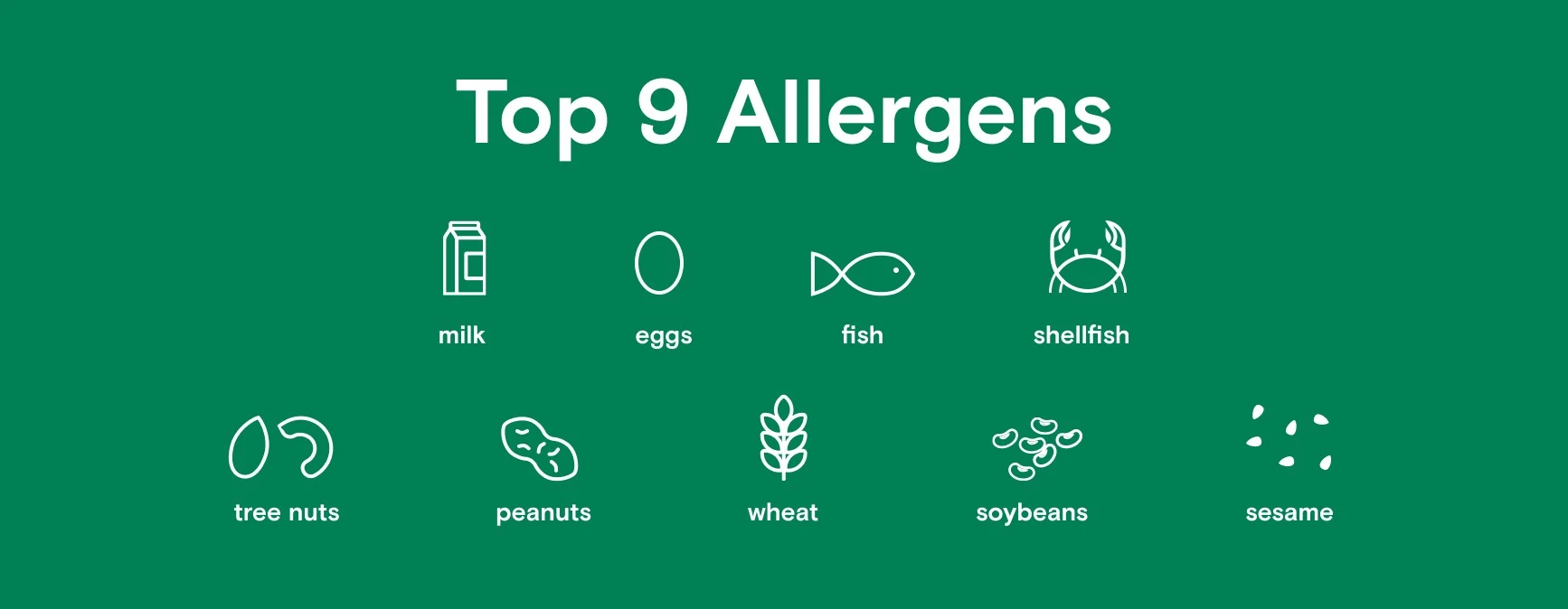 There are 9 common food allergens that account for 90% of all food allergies: