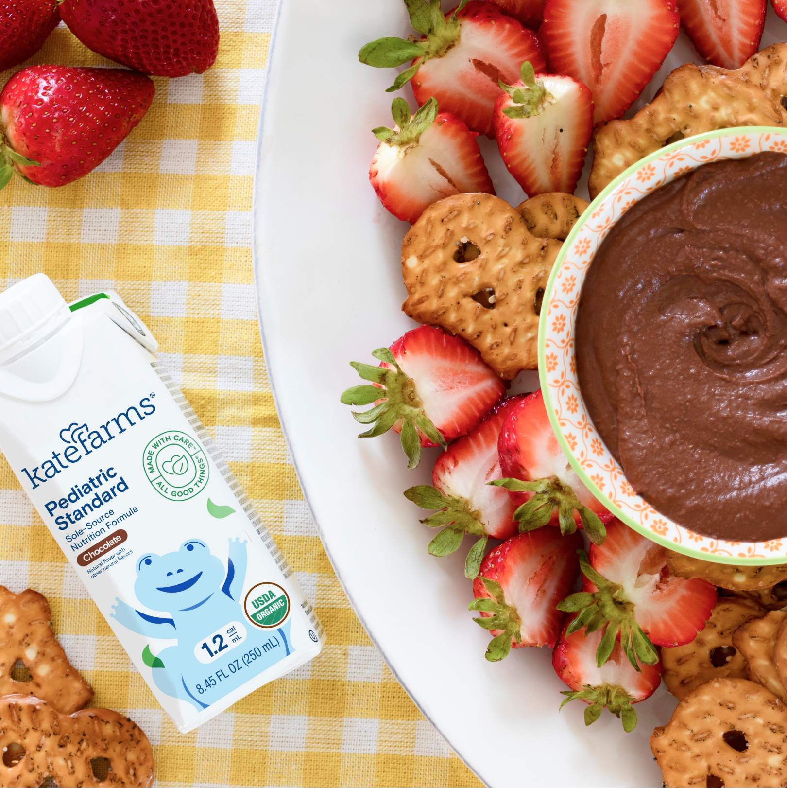 Chocolate is the star of this uniquely delicious appetizer (or dessert!) that includes Kate Farms Pediatric Standard 1.2 Chocolate, chickpeas, cocoa powder and a dash of tahini.