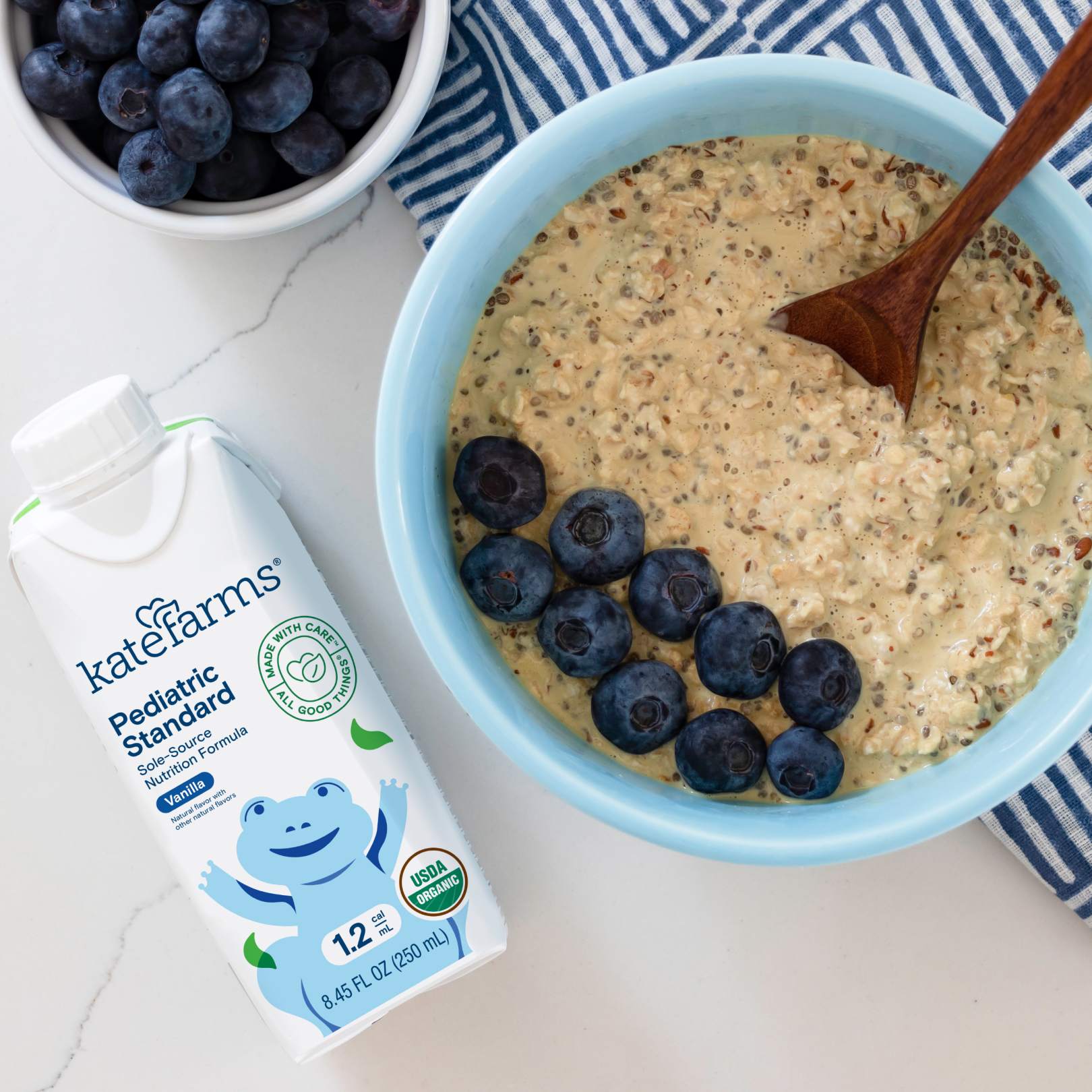 This hearty breakfast treat is packed with nutrients to keep you thriving, including chia and flax seeds, plus Kate Farms Pediatric Standard 1.2 Vanilla and a touch of vanilla extract.